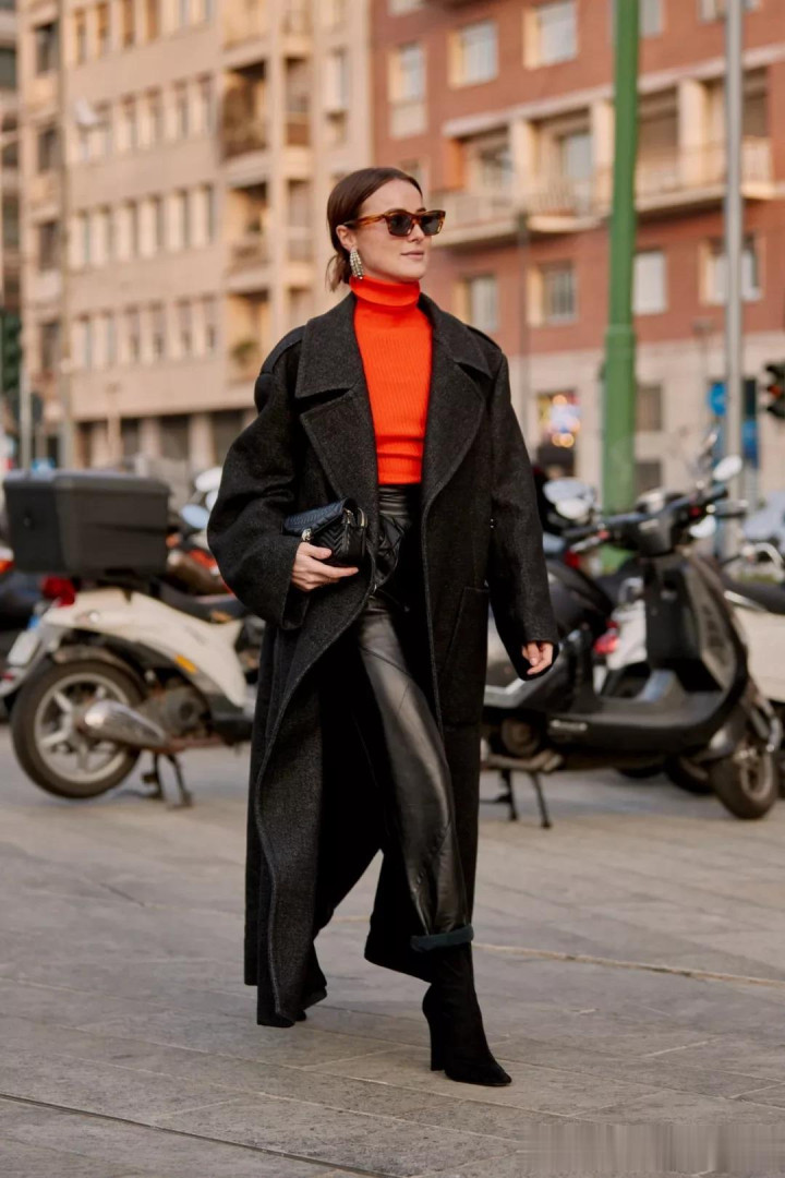 建议:外套选择修身轻薄的款式,